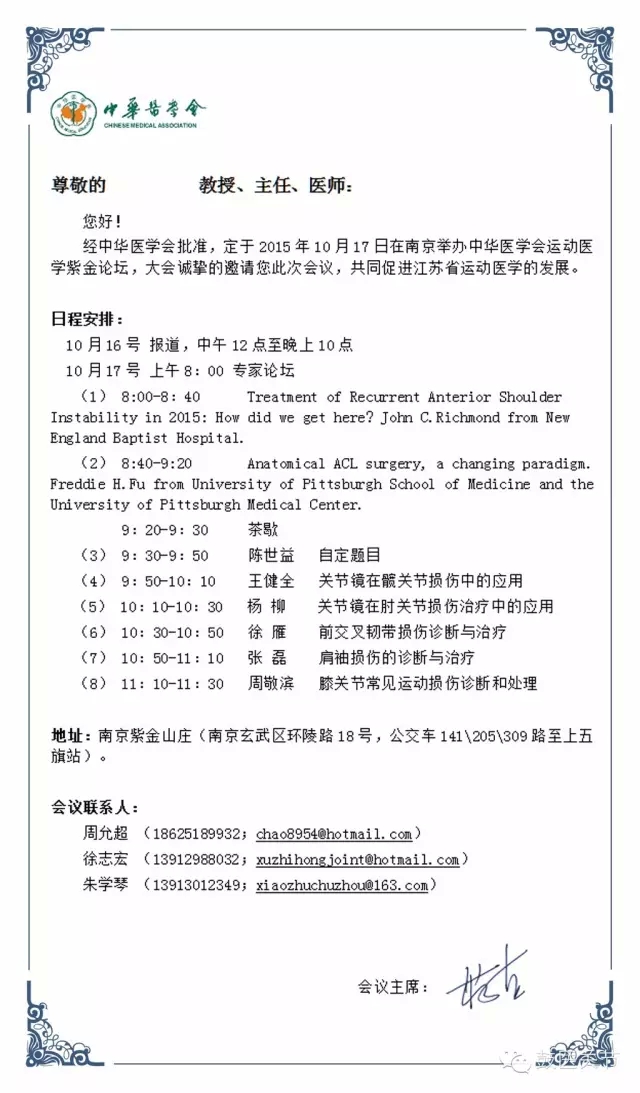 周允超(18625189932;chao8954@hotmail.com) 徐志宏(13912988032;xuzhihongjoint@hotmail.com) 朱学琴 (13913012349;xiaozhuchuzhou@163.com)