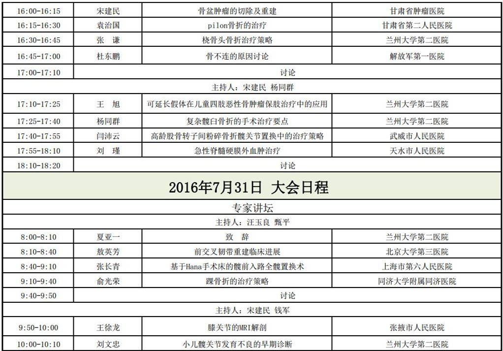 为响应国家“一带一路”战略发展近期目标,夯实丝绸之路经济带卫生医疗基础,由甘肃省医学会骨科专业委员会、甘肃省医学会运动医学专业委员会主办,中华医学会骨科学分会协办,兰州大学第二医院骨科医院和河西学院附属张掖人民医院共同承办的“第二届中国西部丝绸之路骨科高峰论坛暨金张掖论坛”,定于2016年7月29日-7月31日在美丽的丝绸之路重镇-张掖市举办。