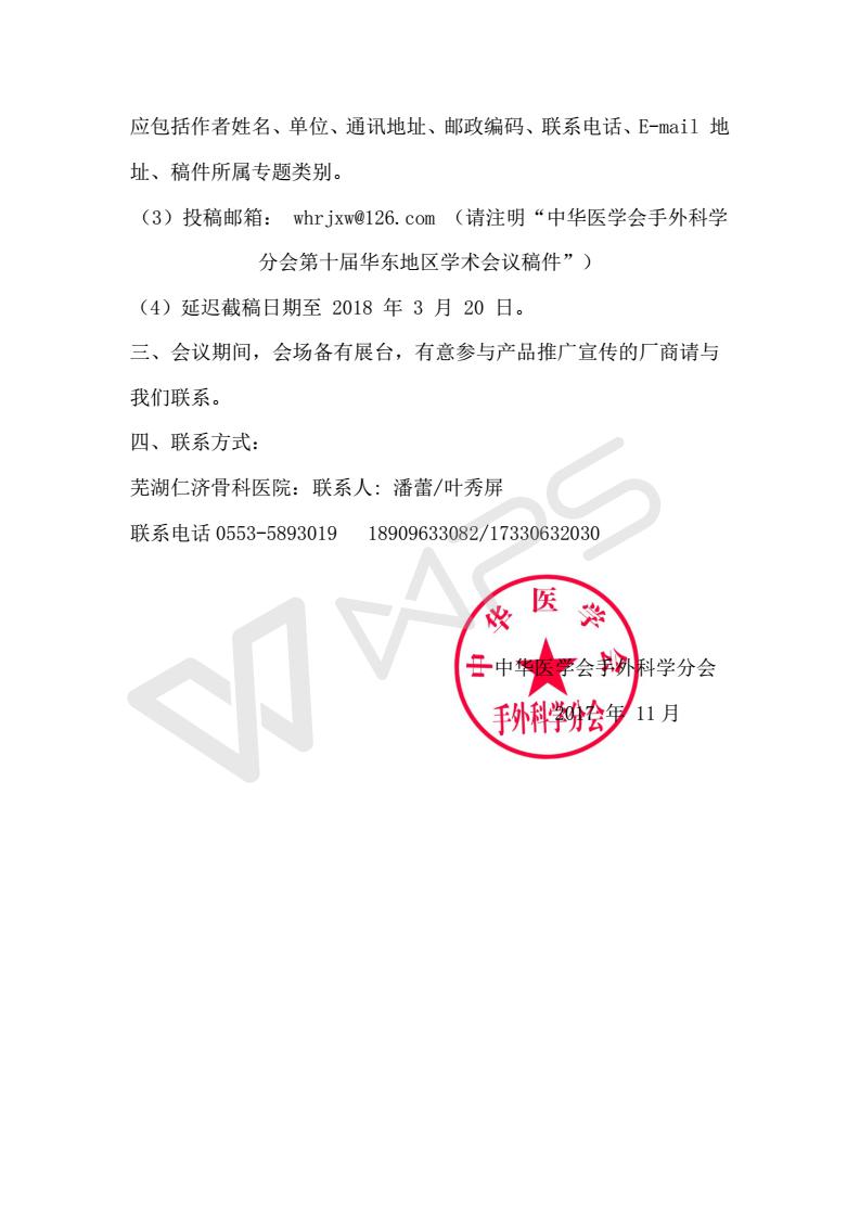 芜湖仁济骨科医院:联系人: 潘蕾/叶秀屏