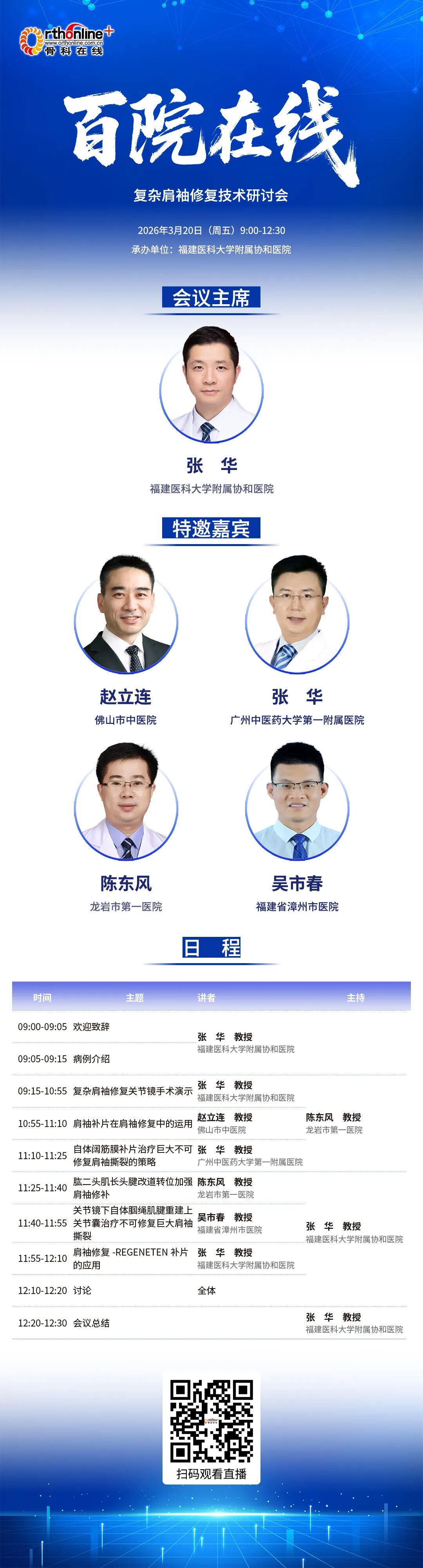 随着运动医学的快速发展,肩袖损伤的诊疗技术日新月异,尤其对于复杂、巨大及不可修复撕裂的处理,仍是临床关注的焦点。为持续提升运动损伤规范化诊疗水平,由骨科在线主办,福建医科大学附属协和医院承办的“百院在线”复杂肩袖修复技术研讨会将于2026年3月20日召开。